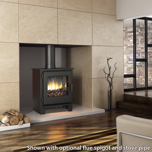 Crafted from high-quality steel with an elegant matt black finish, the Desire 6 effortlessly complements contemporary and traditional interiors alike. The 2kW heating unit ensures a cosy atmosphere, while the thermostatic controls allow you to easily adjust the temperature to suit your needs. There is also an optional decorative flue pipe and spigot to create the illusion of a woodburning stove.