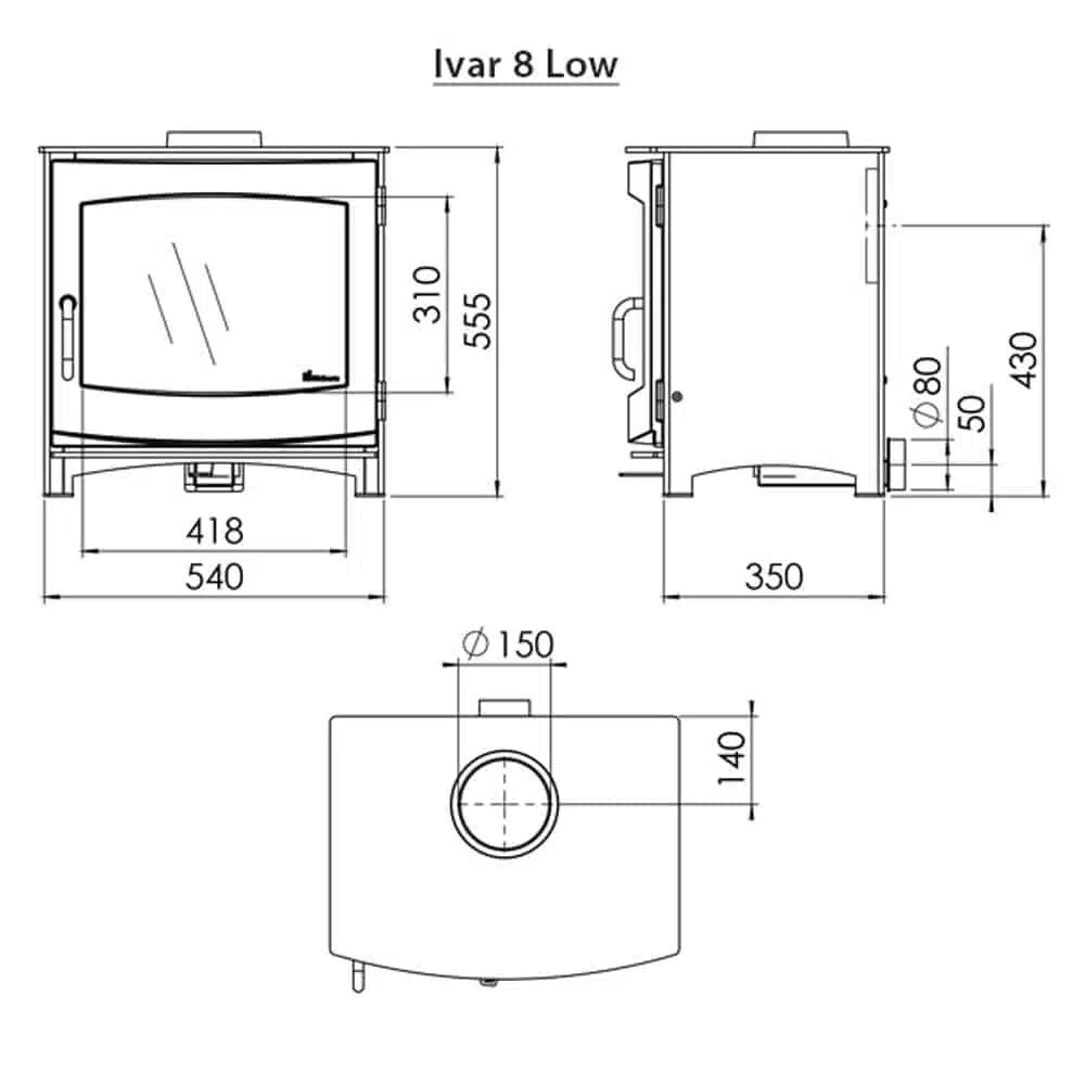 Powerful performance on the Ivar 8 with a mighty maximum heat output rating of 10kW! Nominal output is rated at 8kW so this model is best suited to larger rooms or open-plan living areas.