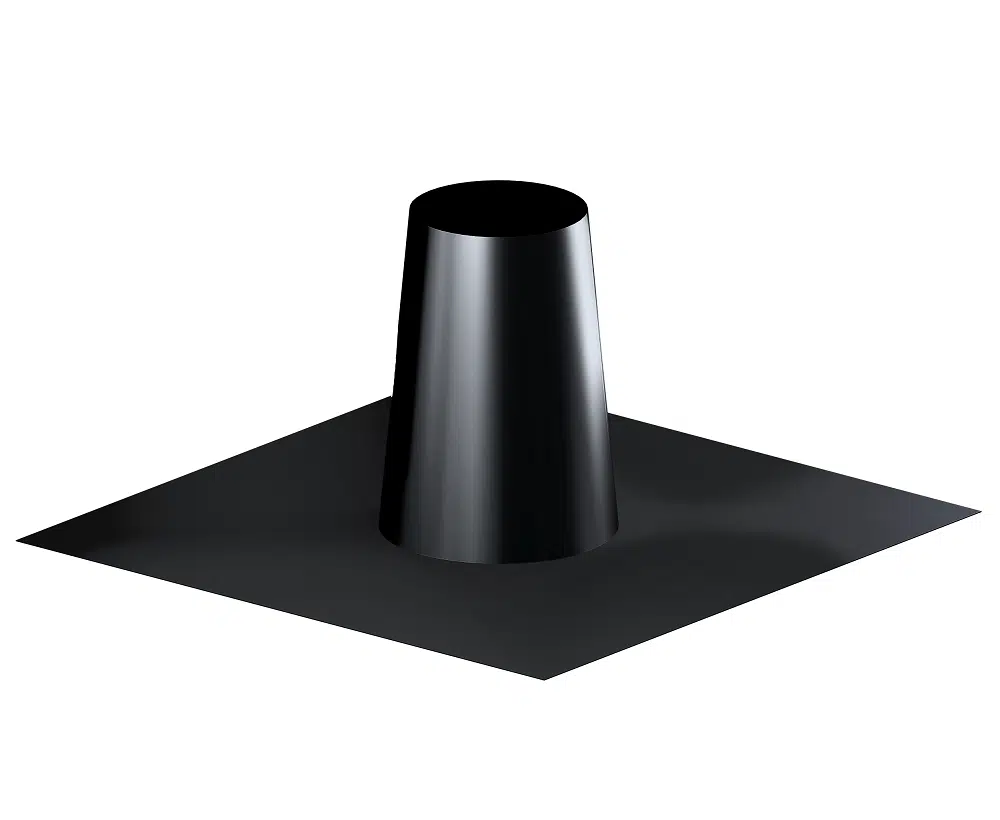 This 6″ (150mm) Flat Flashing Black H300 Inox Base is part of the Dinak DW Design System, which is a twin wall flue chimney system manufactured in Europe. Suitable for all types of applications: wood, pellets, gas, gas oil and condensing oil. These are used to provide a water tight seal on the outside of your chimney system.