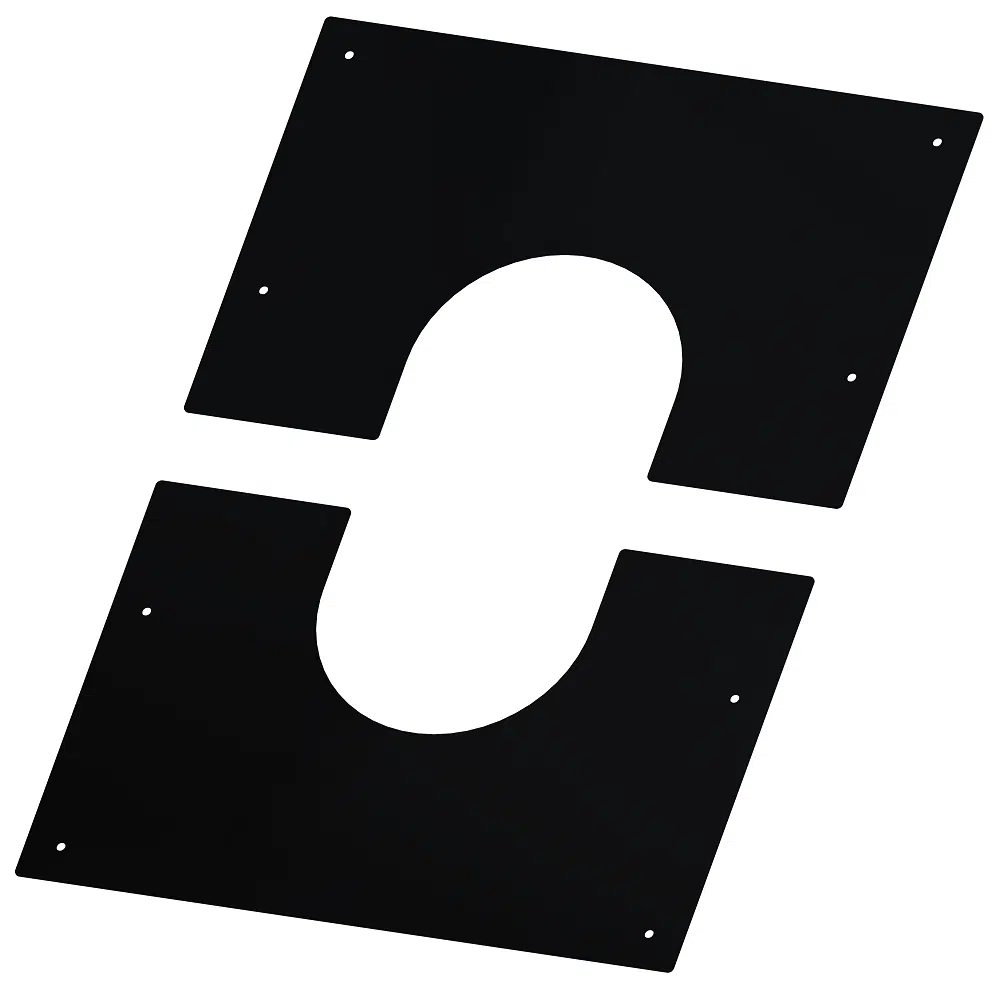 This 5″ (130mm) Squared Wall Finishing Plate 30/45 Degrees is part of the Dinak DW Design System, which is a twin wall flue chimney system manufactured in Europe. Suitable for all types of applications: wood, pellets, gas, gas oil and condensing oil. Flat Finishing Plates are used to protect and seal where your flue system passes through a wall.