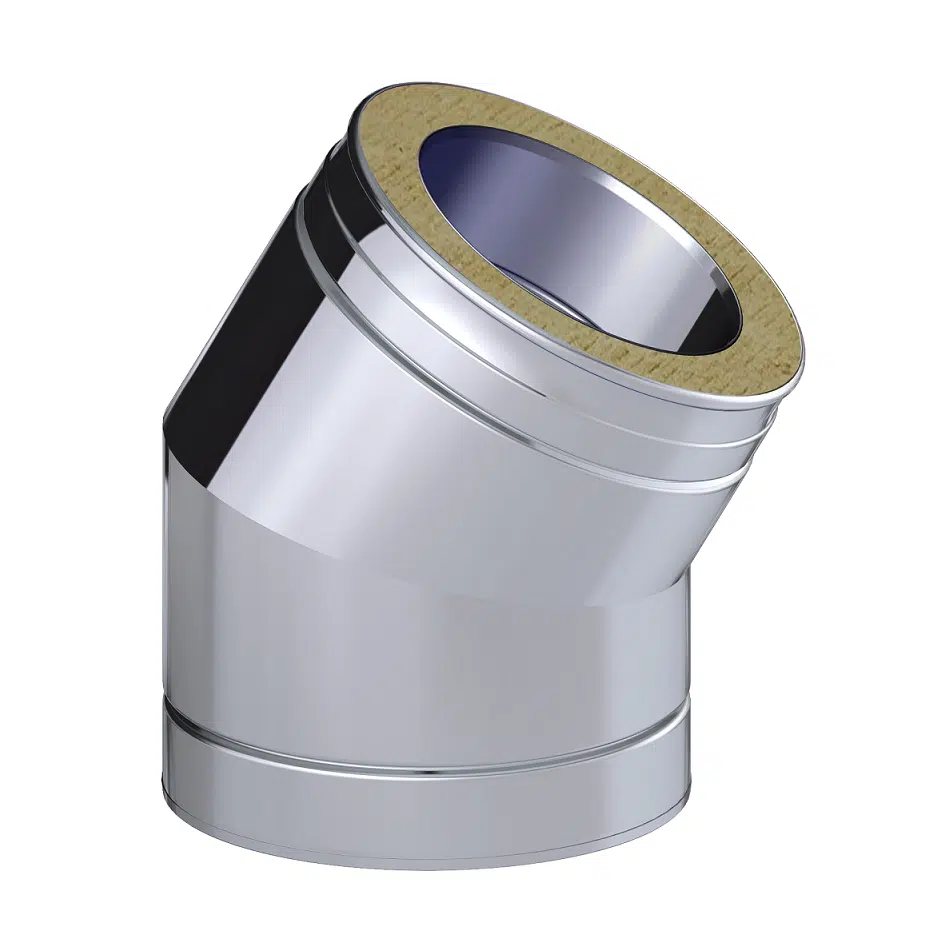 This Dinak DW Design 5″ (130mm) Stainless Steel 30 Degree Elbow , which is a twin wall flue chimney system manufactured in Europe. Suitable for all types of applications: wood, pellets, gas, gas oil and condensing oil. This elbow is used to aid in the change of direction within a flue system.