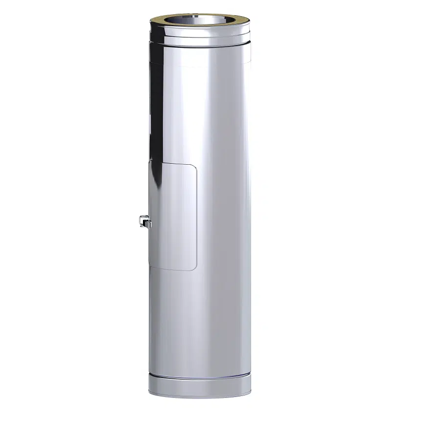This Dinak DW Design 5″ (130mm) Stainless Steel Inspection Length 460mm is part of the Dinak DW Design System, which is a twin wall flue chimney system manufactured in Europe. Suitable for all types of applications: wood, pellets, gas, gas oil and condensing oil. This straight length forms the main body of your twin wall system and measures 460mm in length, while also including an inspection plate for sweeping and cleaning your system.