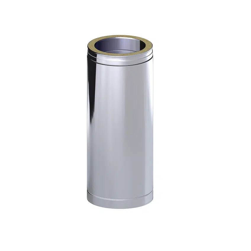 This Dinak DW Design 5″ (130mm) Stainless Steel Length 460mm is part of the Dinak DW Design System, which is a twin wall flue chimney system manufactured in Europe. Suitable for all types of applications: wood, pellets, gas, gas oil and condensing oil. This straight length forms the main body of your twin wall system and measures 460mm in length.