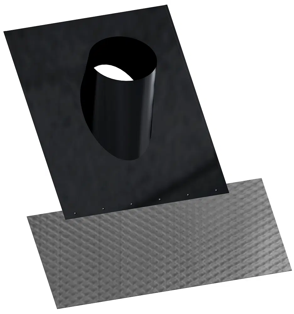 This 6″ (150mm) Black Terminal 5/30 Degrees Grey is part of the Dinak DW Design System, which is a twin wall flue chimney system manufactured in Europe. Suitable for all types of applications: wood, pellets, gas, gas oil and condensing oil. These are used to provide a water tight seal on the outside of your chimney system for a tiled roof and comes with a red tile effect.