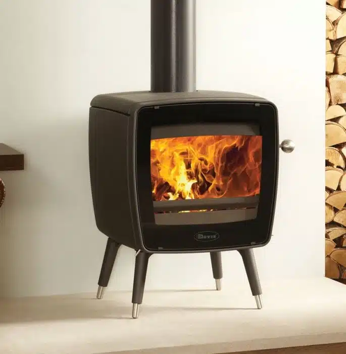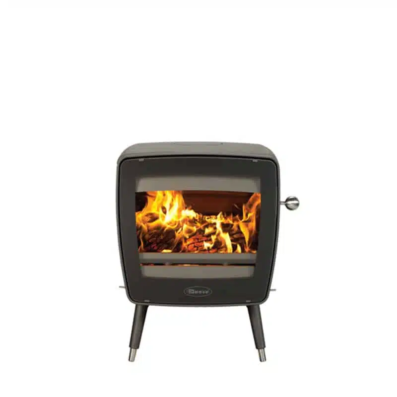 The Dovre Vintage 35 wood-burning stove, known for its high efficiency, showcases a modern design that harks back to the sleek and distinctive style of appliances from the 1950s and 1960s.
