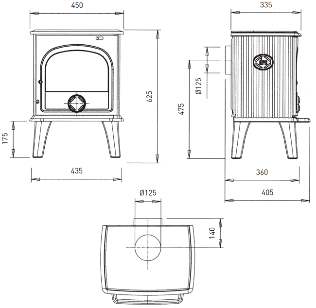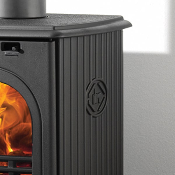 Featuring intricate detailing on the sides, including the well-known ‘DRU’ logo, this multi-fuel stove is perfect for small to medium-sized rooms. It has standard dimensions and a nominal heat output of 4.9kW, so additional ventilation is typically unnecessary. The 125mm (5″) top or rear flue connection allows for versatile installation options.