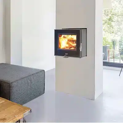 The Adept Inset has a much shorter install time compared to most inset / cassette type stoves. This is due to the integrated dual layers of thick steel which make up every Adept stove. Simply fire-board out the aperture in the wall, slide the Adept into the recess keeping 30mm gap all around, then connect the flue from inside the stove.