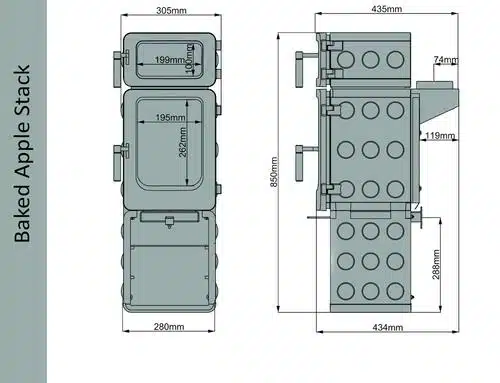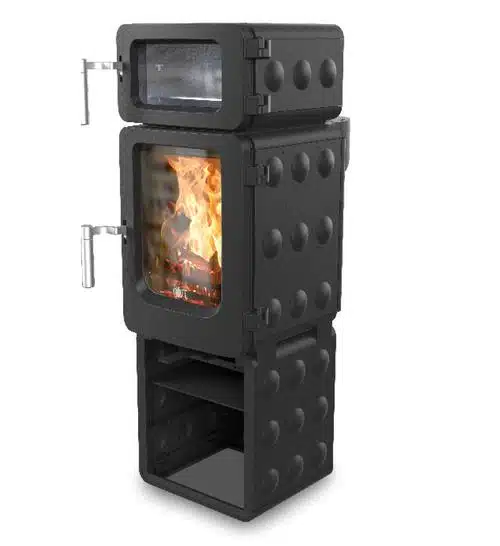 The Baked Apple Pie Stack offers the full combination of accessories from the Apple Pie range, including the top oven for baking and pedestal base for elevating the stove to a higher position as well as acting as a log store.