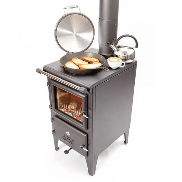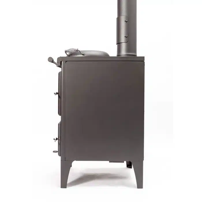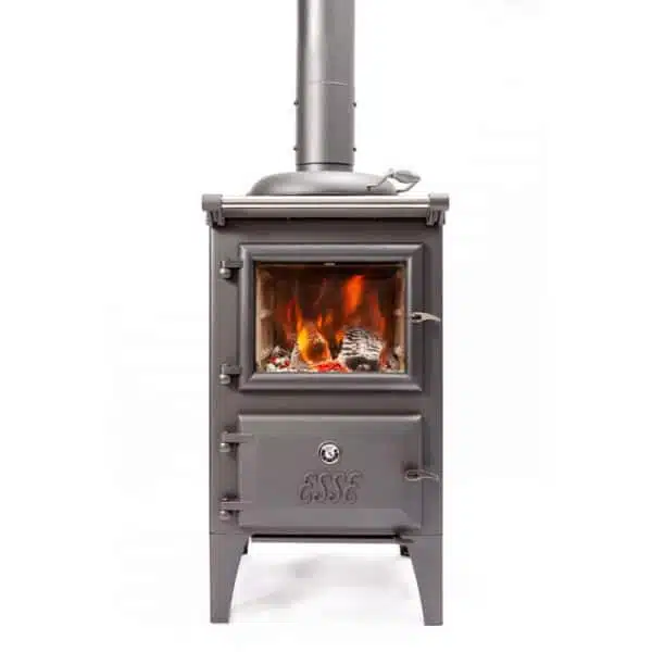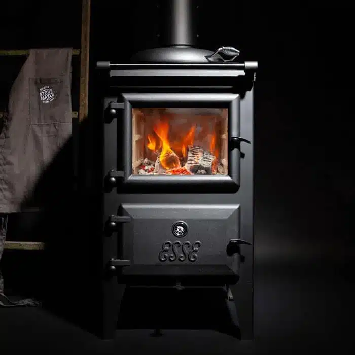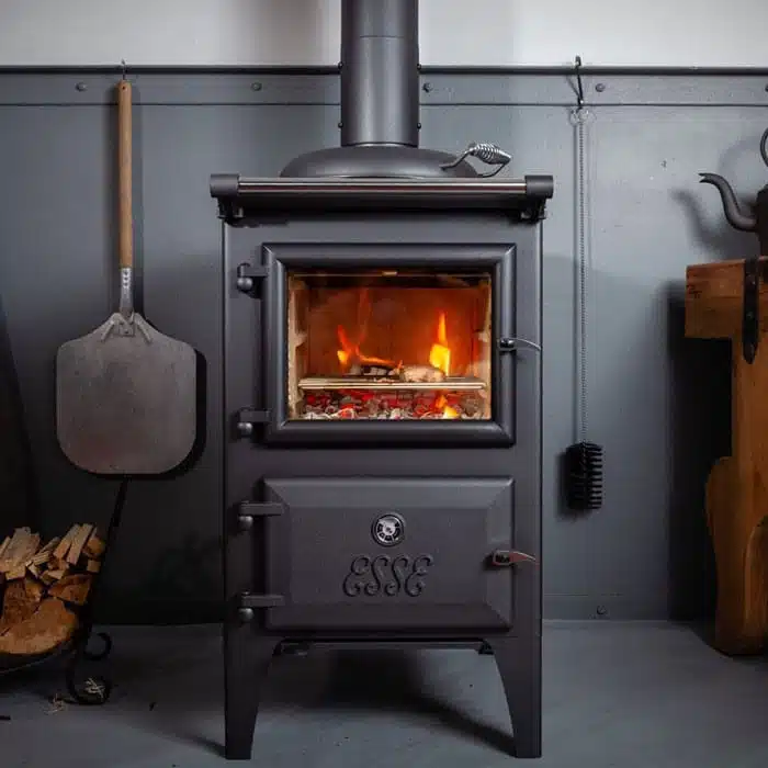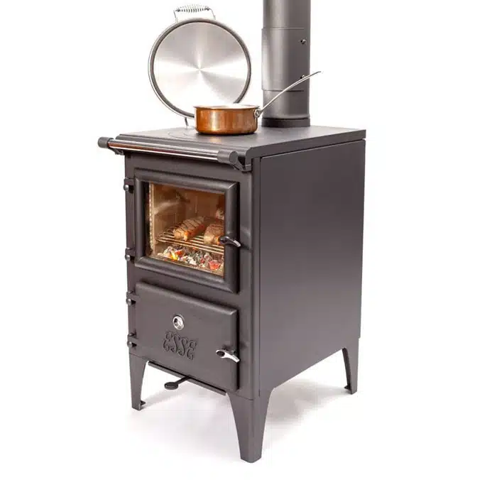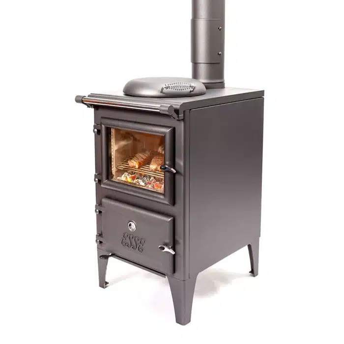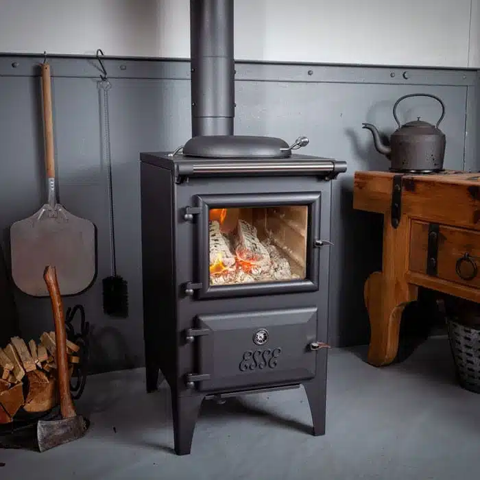 The Bakeheart is an elegantly proportioned wood-fired cooking stove that provides room-filling radiant heat, a graduated temperature cooking hob and a generous baking oven. While its rugged cast-iron design and simple styling may give the impression that the Bakeheart has been around for decades, this state-of-the-art piece of quality British engineering encapsulates everything ESSE learned in more than 160 years of manufacturing stoves and range cookers. Using the same principles as our best-selling Ironheart, with a clear view of the dancing flames through the glass door to the firebox, the wood-fired Bakeheart provides ample heat to keep a cottage kitchen warm and toasty. While ESSE standard range cookers are designed to contain heat, the Bakeheart also incorporates convection panels that radiate warmth out into the room – just like a wood-burning stove. ESSE’s unique heat transfer stove technology efficiently channels heat from the firebox into the 32-litre oven and hob. The graduated temperature hob offers additional heat control, with the heat reducing from 300˚C in the centre down to 190˚C at the outside. Designed to accommodate dry, seasoned logs of up to 400mm (15in) length the Bakeheart can be installed pretty much anywhere to provide a reliable, ‘off-grid’ source of heat for extended periods.