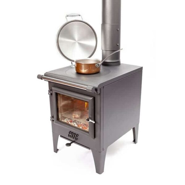 The compact Warmheart wood-fired cooking stove is the perfect heating solution, while its rugged cast-iron design and simple styling may give the impression that the Warmheart has been around for decades, this state-of-the-art piece of quality British engineering encapsulates everything we’ve learned in more than 160 years of manufacturing stoves and range cookers. Using the same principles as our best-selling Ironheart, the wood-fired Warmheart provides ample heat to keep things warm and toasty while a casserole bubbles away on the hob or a couple of steaks sizzle in the firebox. No gas or electricity? No problem. The Warmheart comes into its own in an off-grid environment, making it the perfect choice for heating a bolt hole in the outback or a cabin in the woods. While our standard range cookers are designed to contain heat, the Warmheart also incorporates convection panels that radiate warmth out into the room – just like a wood-burning stove. ESSE’s unique heat transfer stove technology efficiently channels heat from the firebox into the graduated temperature hob, extracting energy from the combustion process for your wood-fired cooking adventures. The graduated temperature hob offers additional heat control, with the heat reducing from 300˚C in the centre down to 190˚C at the outside. Combine with a domestic boiler and the 5kW Warmheart will also provide hot water while the hob can be used to boil a kettle, cook a casserole or griddle a steak. Designed to accommodate dry, seasoned logs of up to 400mm (15in) length the Warmheart can be installed pretty much anywhere to provide a reliable, ‘off-grid’ source of heat for extended periods. Whether it’s providing heat and hot water in a remote mountain hut or char-grilled T-bones after a day’s fishing on the lake, the Warmheart can be counted on to deliver heat and sustenance, wherever and whenever you need it.