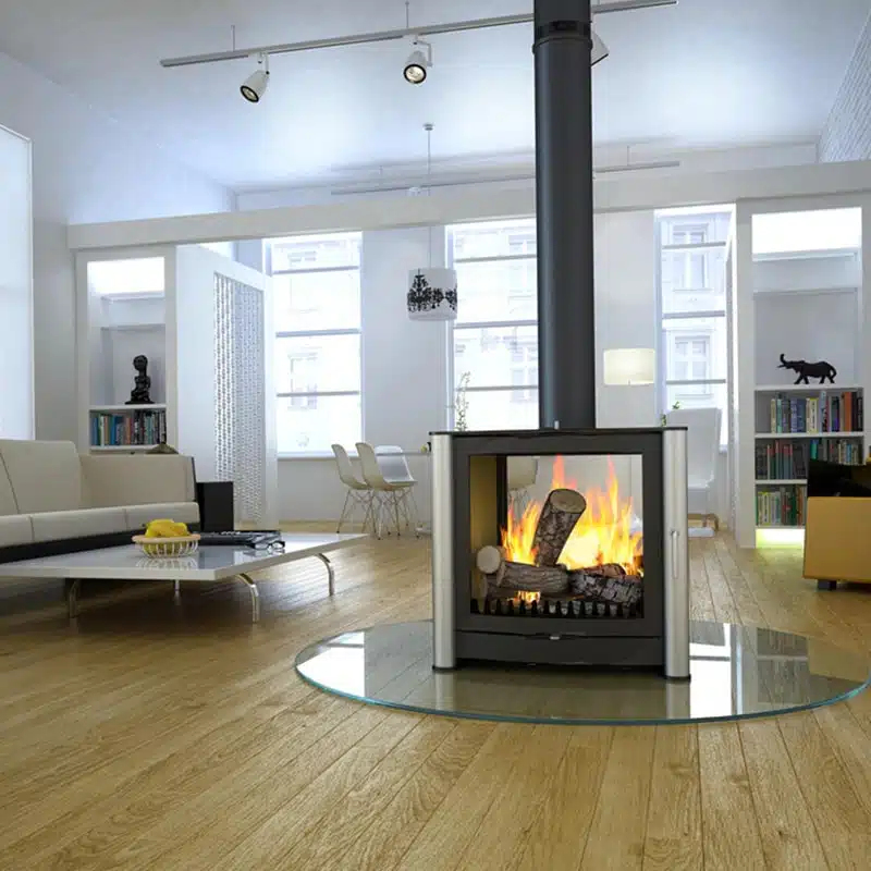 The Firebelly FB3 Double Sided stove is a powerful heating solution that can distribute up to 18kW of heat between two rooms. It’s a popular choice for those with large, open-plan living spaces who want to make a statement with a central feature.