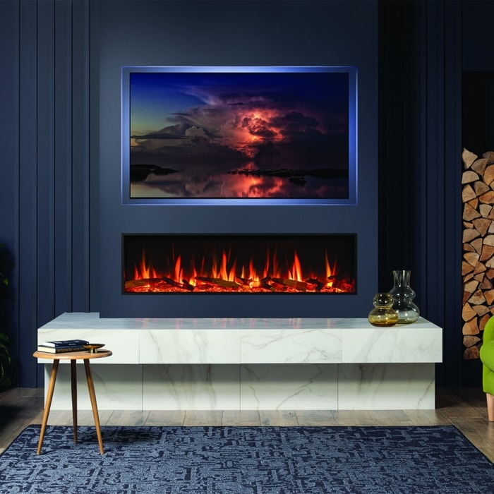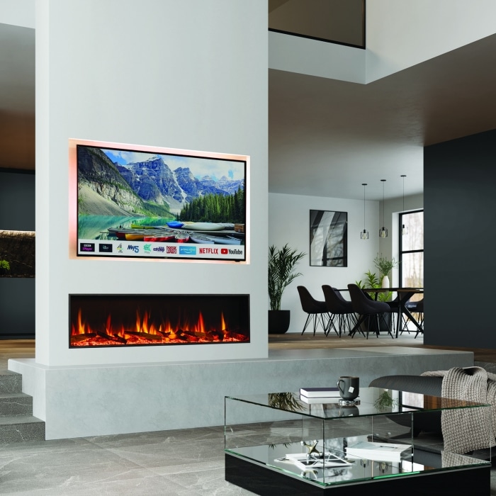 In addition to the multiple flame effects and vibrant Chromalight® up-lighting, the option to upgrade the eStudio with the LED Mood Lighting System extends its ability to create the ultimate ambience. Featuring the same 13 Chromalight® colours as the eStudio fire itself, and all controllable via the remote handset, the optional Mood Lighting System can be placed almost anywhere you see fit – and is a favourite for feature media wall installations.
