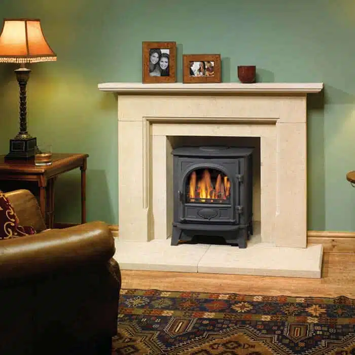 With authentic wood burning stove styling, right down to the hinged door with handle, the Gazco Stockton 5 gas stove is conveniently sized between the Small and Medium Stockton gas stoves. So you have even more opportunity to suit your needs – and to enjoy all the enchantment of a real coal or log-effect with a gas stove (depending on flue type). Using cast iron for the door and heavy gauge steel for the body, Gazco’s Stockton Gas Fires & Stoves range combine simple, understated lines with Gazcos latest living flame technology. With a heat output up to 3.36kw making it a perfect fire for standard rooms.