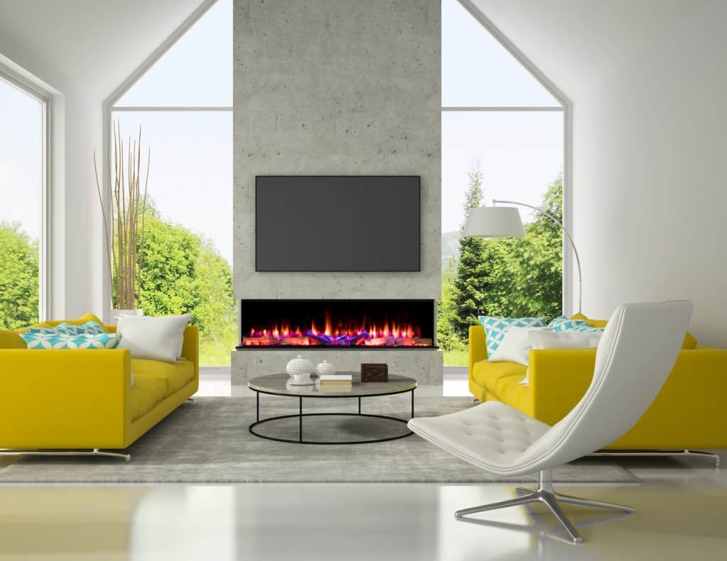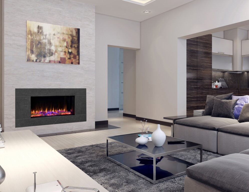 - Each fire comes with built-in attachments for easy set-up in a feature wall