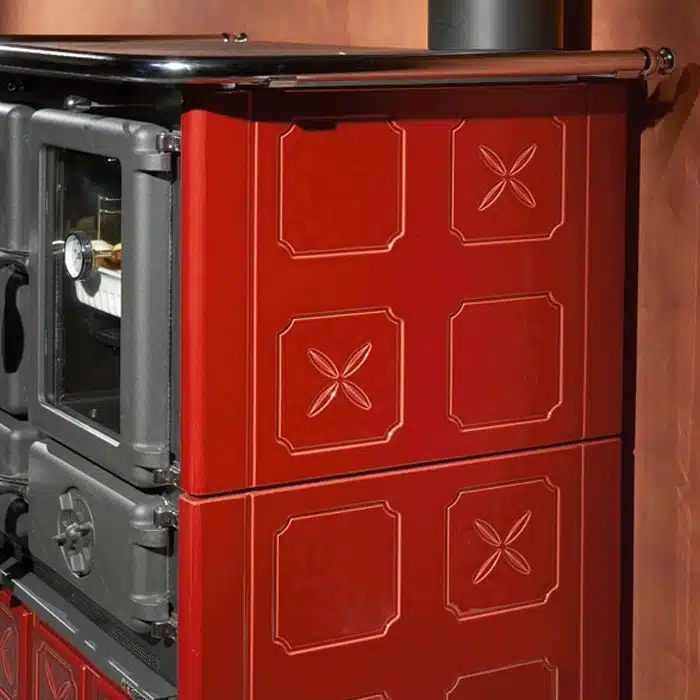 The La Nordica Rosetta BII Maiolica Wood Burning Cooker is a beautiful blend of traditional Italian craftsmanship and modern efficiency. Finished in a deep Bordeaux Red Maiolica glaze, it brings warmth, elegance, and a touch of timeless style to any kitchen — whether classic or contemporary.