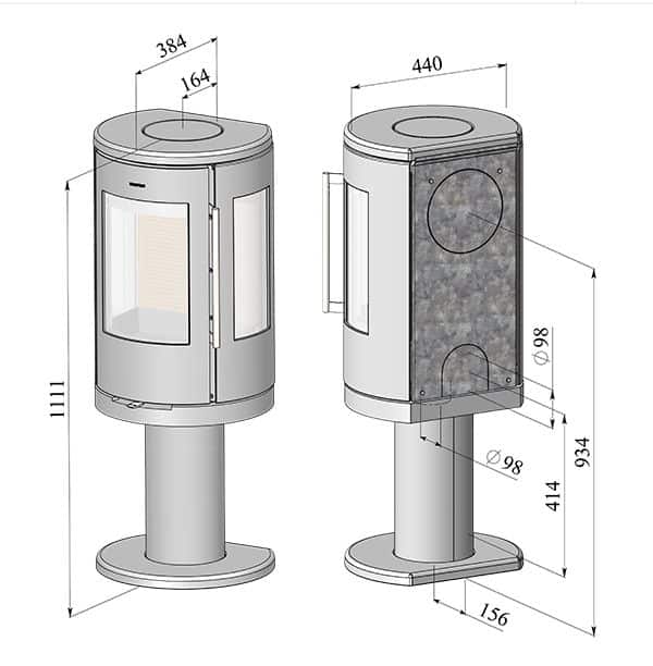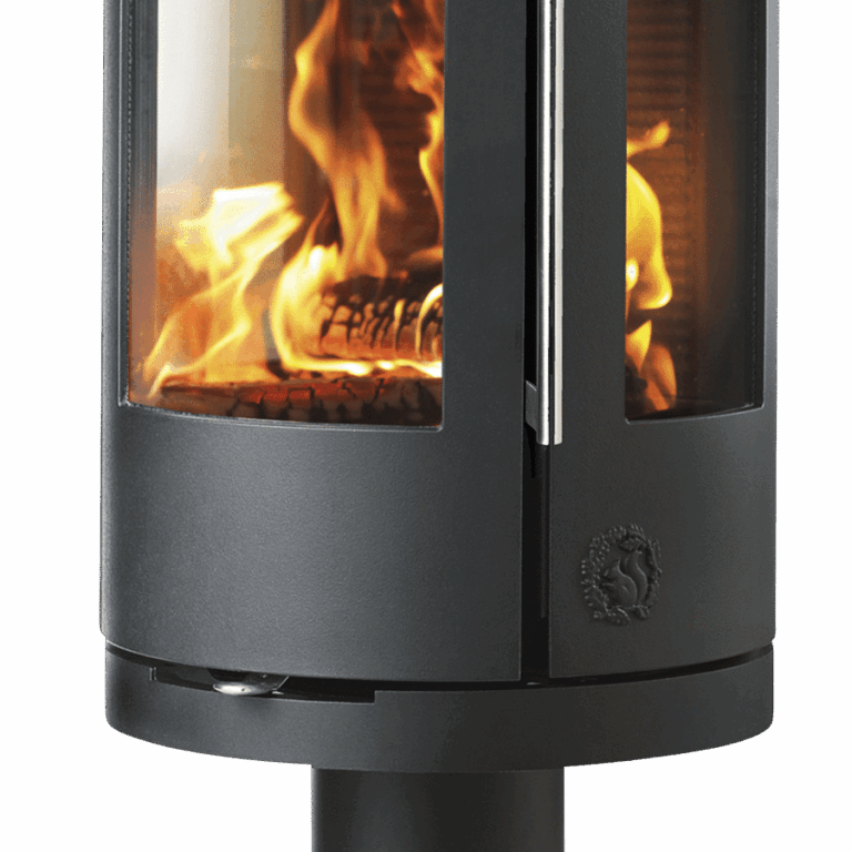 Morsø 7449 raises itself into the room on a beautiful extra high pedestal. The large glass surfaces make it possible to enjoy the flames through 180 degrees.