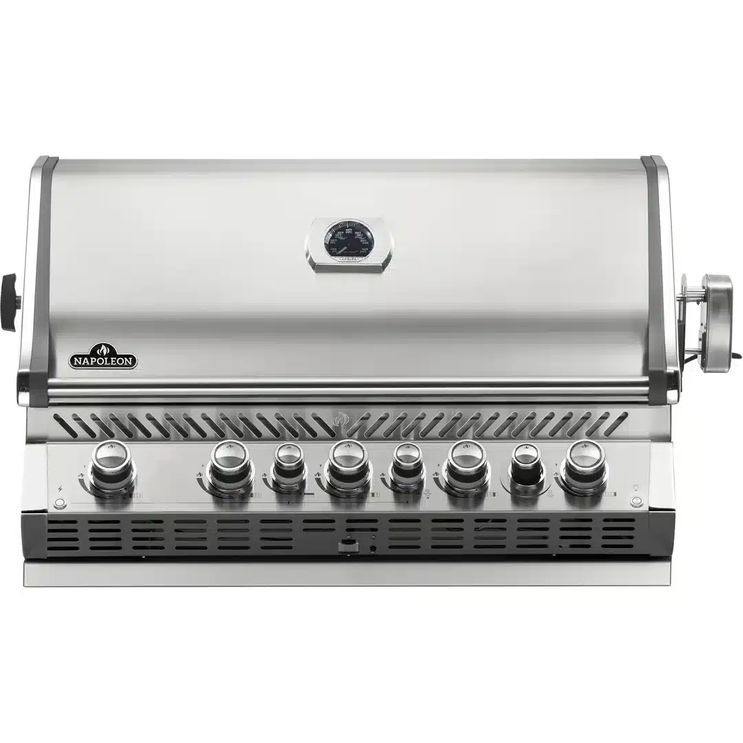 A gourmet outdoor kitchen deserves a centrepiece that’s as impressive as the meals you’ll create with it—and the Napoleon Built-in Prestige PRO™ 665 Natural Gas Grill with Infrared Rear Burner is just that. Designed to deliver outstanding performance and striking good looks, this spacious grill features seven powerful burners housed in sleek, durable stainless steel, enhanced with chrome accents for a touch of luxury.