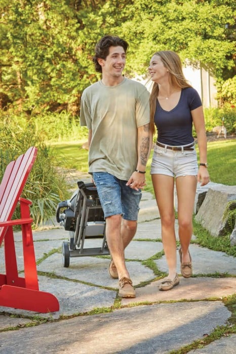 Napoleon’s TravelQâ„¢ PRO285X Portable Propane Gas Grill can grill up to 20 hamburgers at once on the 285 square inches of cooking area. The stylish all-black finish with chrome details will match any outdoor decor. The cast aluminum, high-topped lid design lets you take portable grilling to the gourmet level. Roast whole chickens or turkeys, pork and even prime rib; this little grill can do it. Using the dual stainless steel burners, you have precise control over the temperature, just like on Napoleon’s full sized grills. High heat searing is a snap and you’ll know it’s a Napoleon with the iconic WAVEâ„¢ cooking grids for those distinctive sear marks. This grill has everything you need for perfect portable grilling anywhere, featuring all-terrain wheels, easy folding, setup, and compact storage, and propane tank straps, this grill is perfect for any adventure. You can’t beat this portable, professional package.