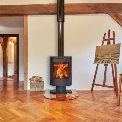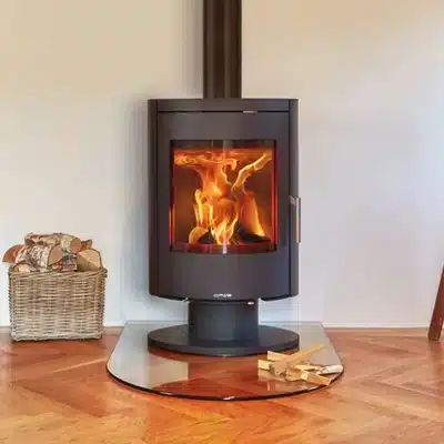 The Opus Harmony stove now offers an enhanced viewing experience from any seat in the room, thanks to its rotating pedestal base. Elevating the stove to eye level when seated on a sofa, with a capacity to rotate a full 90°, allowing you to immerse yourself in the mesmerizing flame view from its expansive glass window from any corner of the room. Whether you’re absorbed in your favorite book by the window or hosting guests in the heart of your home, this stove ensures that everyone relishes the allure of the dancing flames.