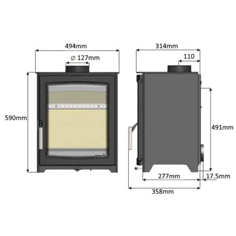 While the stove is designed to burn wood only in its standard form, an optional Multi-Fuel Kit is available for those who want to burn smokeless fuels. Aspect stoves can be fitted on a log stand to raise them off the floor and provide storage for wood. It is a additional 225mm tall. The Aspect range also includes the option of fitting the stove on a bench, available in two lengths (800mm and 1,195mm), both at a height of 345mm and a depth of 415mm.