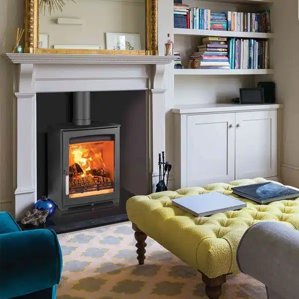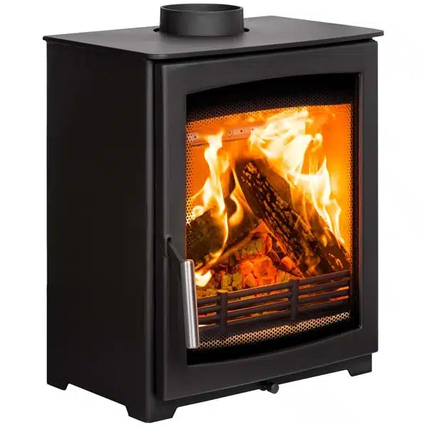 Rated at 4.9kW, the nominal heat output of this model typically doesn’t require additional ventilation in the room. It meets DEFRA’s strict approval for use in smokeless zones, allowing you to burn wood no matter where you are in the UK. The Aspect 5 Compact is designed with a reduced depth, resulting in a wider shape that provides an excellent view of the flames through the large viewing window, kept clean by an active Airwash system. It’s an ideal size for a standard room. With advanced Tripleburn technology, this stove achieves an outstanding efficiency of up to 81.6%, resulting in improved performance and controllability. The three air streams enable highly efficient burning of the fuel, resulting in more heat output, less smoke, and a cleaner environment.