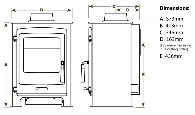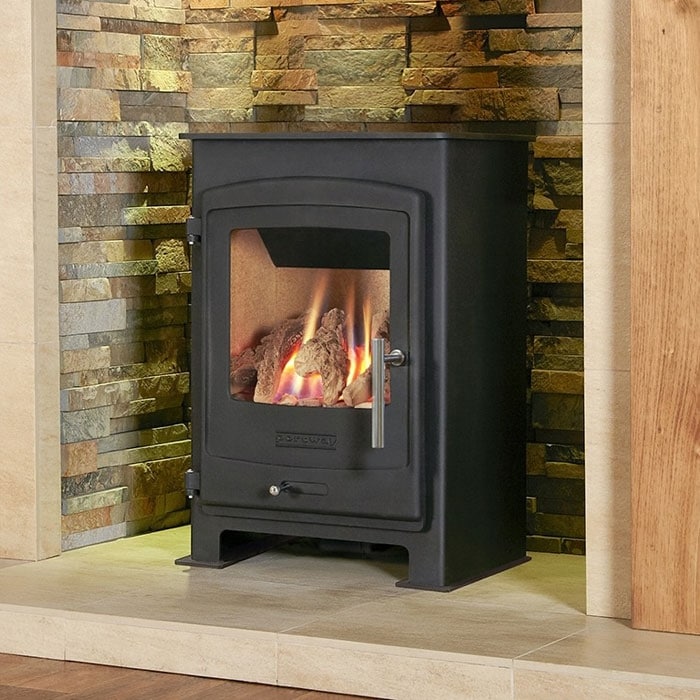The conventional flue Portway P1 Gas Stove is designed for easy installation in homes with a conventional chimney or a Class 2 Pre-Fabricated 5″ flue. It delivers a maximum heat output of 3.4kW with an impressive efficiency rating of 84.2%. The stove comes with a log-effect fuel bed as standard, with an optional coal-effect fuel bed available for purchase.