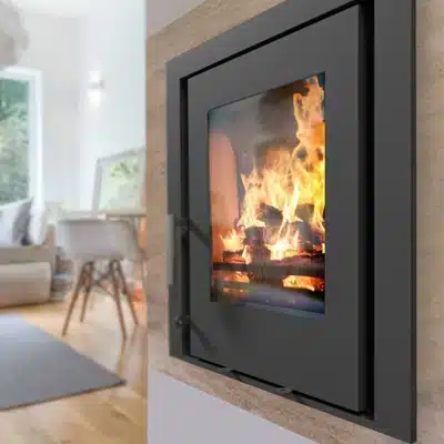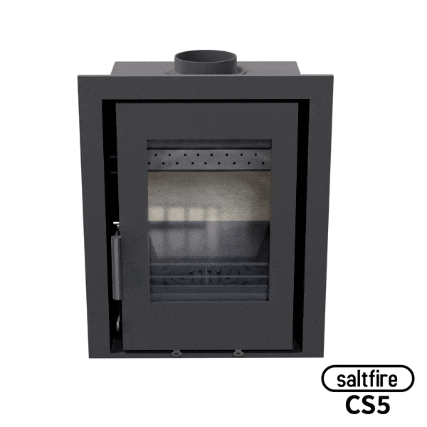 The Saltfire CS5 5kW Insetstove can fit into a standard UK fireplace opening or can be built in higher up in the wall for a more contemporary feel. Easy to operate controls and large ceramic glass viewing window for great views of the fire.