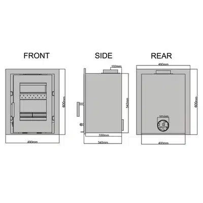 Rear to centre of top flue – 102mm
