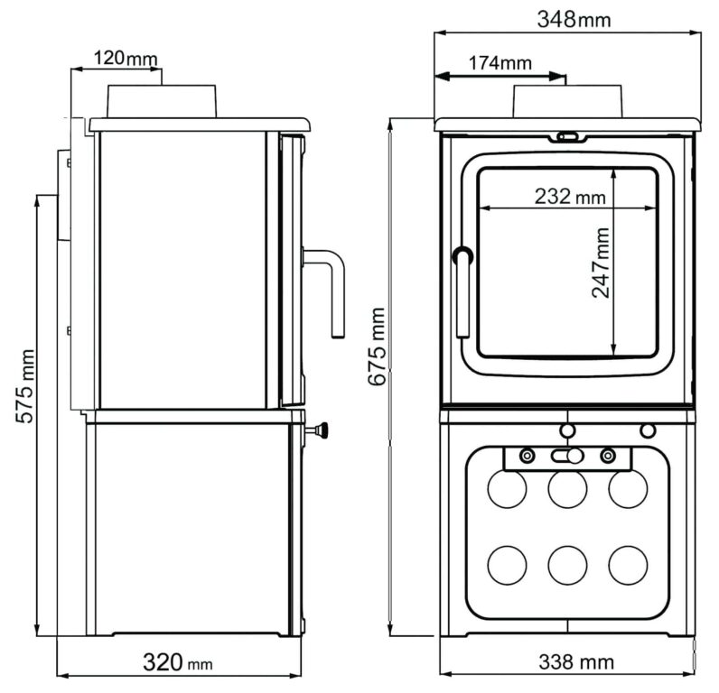 The Peanut range features all-cast-iron construction for maximum heat-retention and ultra-clean-burning, by keeping the belly of the fire hot even during ‘low & slow’ burning. Cast Iron construction also makes for an extremely rugged stove with long life. Originally designed as a compact 3kW its actually so efficient it will achieve up to 4.7kW if required. Its viewing window is big for a compact stove! ‘Peanut 3 Tall’ – can fit a very small UK chimney opening of less than 16” wide. – This can make tight installations so much simpler and easier – rarely would any building/ alteration work need to be done even with a small chimney opening. – Stainless Cook Top Plate available.
