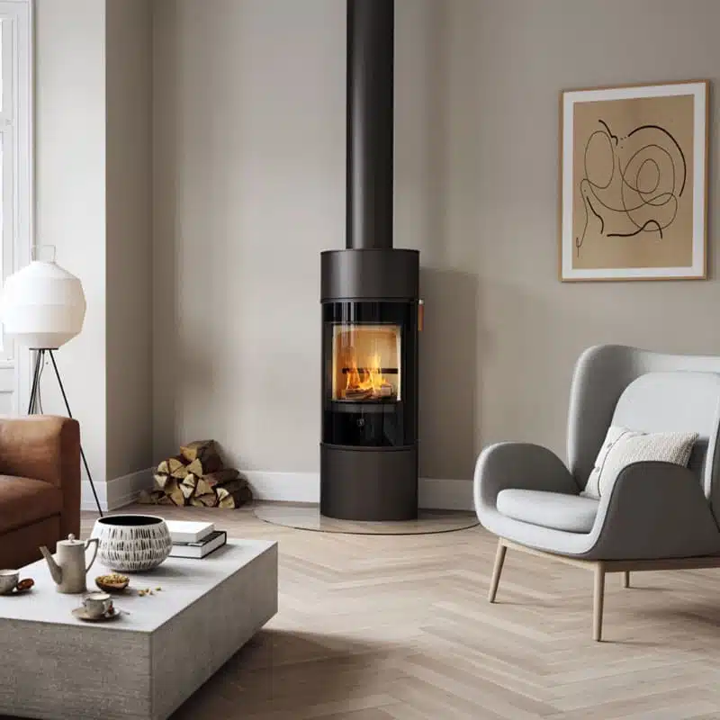 The series has several possibilities for additional details to raise design and function one more level. The stove can be mounted on a rotating base, so you can rotate the whole stove and enjoy the fire from your favourite spot in the room. The tall variants in the series, Scan 84-3 and 4 can be equipped with heat retaining stones hidden in the top. These provide extra heat for up to 12 hours after the last log has been placed.