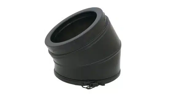 The ICID Plus 125mm 30 degree elbow is designed to provide a controlled change of direction within a twin wall flue system. The bend angle is measured from the vertical and the elbow comes supplied with a locking band for a secure and reliable connection. It features a plain matt black finish that matches the ICID Plus range.