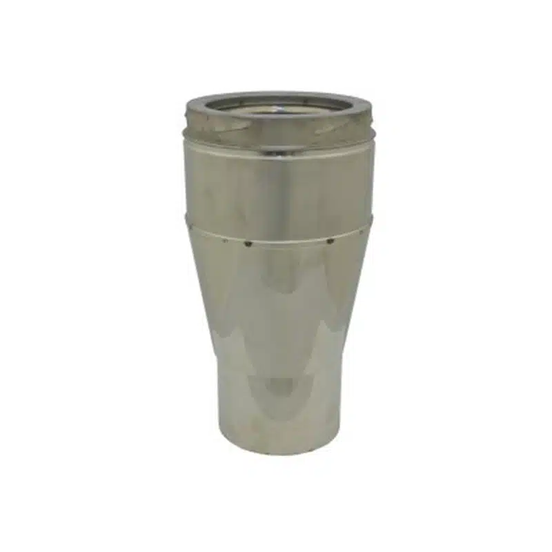 This starter adaptor is part of the ICID Plus twin wall flue system, engineered with advanced corrosion resistant construction. It features a laser welded 316L stainless steel inner liner and a stainless steel outer casing. The system is insulated with 25mm of high density rockwool to help maintain flue gas temperatures, improve efficiency, and support safe appliance operation.
