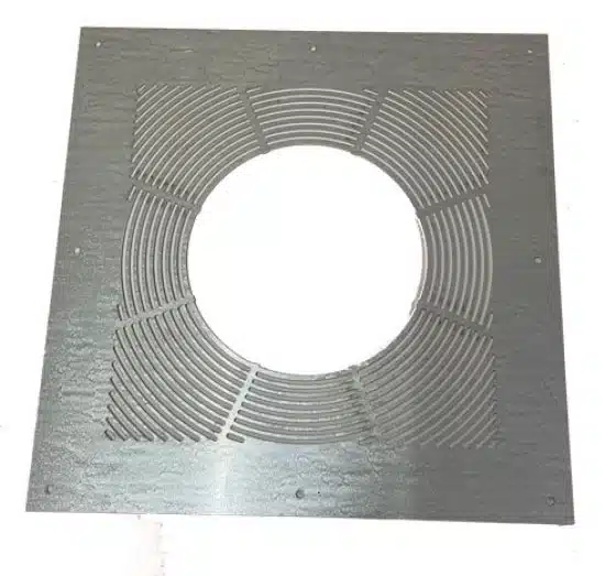 The ICID Plus 150mm Ventilated Fire Stop Square is a G50 ventilated fire stop and support plate designed for installations where a reduced clearance to combustibles is required. It allows the standard clearance of 60mm to be reduced to 50mm and is suitable for use both within floor spaces and within shafts, enclosures, or boxed-in areas, providing safe support and ventilation around the chimney.