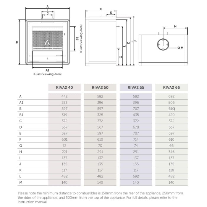 Constructed from high-quality steel with a cast iron grate and log guard, the Riva2 55 is built to last. The DualFlow Airwash system keeps the glass clear for an unobstructed view of the flames, while the thermal-lined combustion chamber ensures efficient fuel use. Installation is flexible: the stove can be freestanding with optional cast or wood-effect feet, a log-store base, or on a stove bench, suiting a wide range of interiors. Ecodesign-compliant and DEFRA Smoke Control Zone-exempt, it meets modern UK environmental and emissions standards, and an integrated external-air connection makes it suitable for airtight, energy-efficient homes.