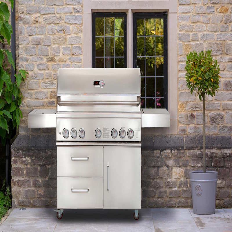 Practical storage is another benefit of this well designed BBQ. A large cupboard door and two drawers provide plenty of space for tools and accessories, and there is even a convenient paper towel rack included. Thick castor wheels make it easy to move the grill around your patio or garden whenever needed.