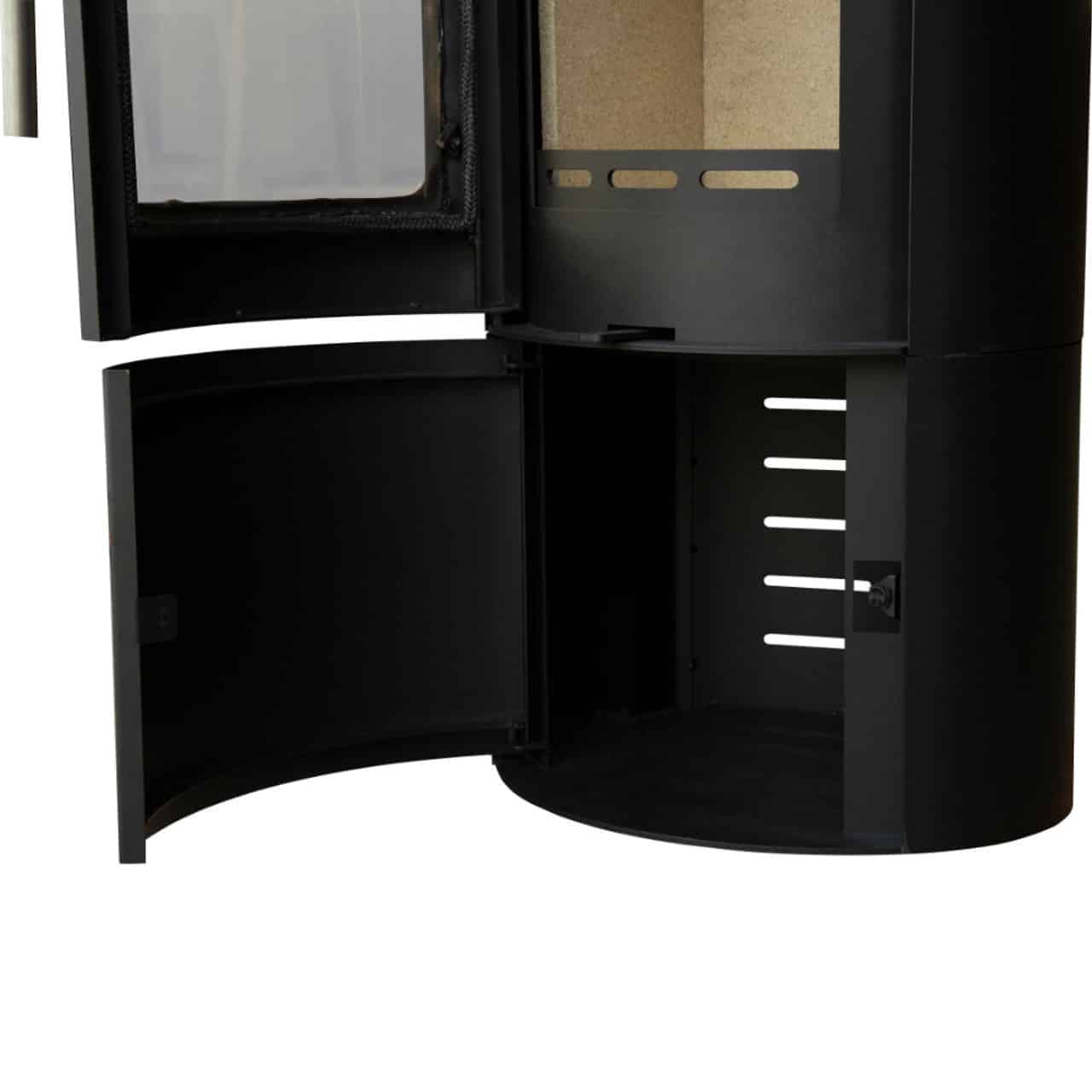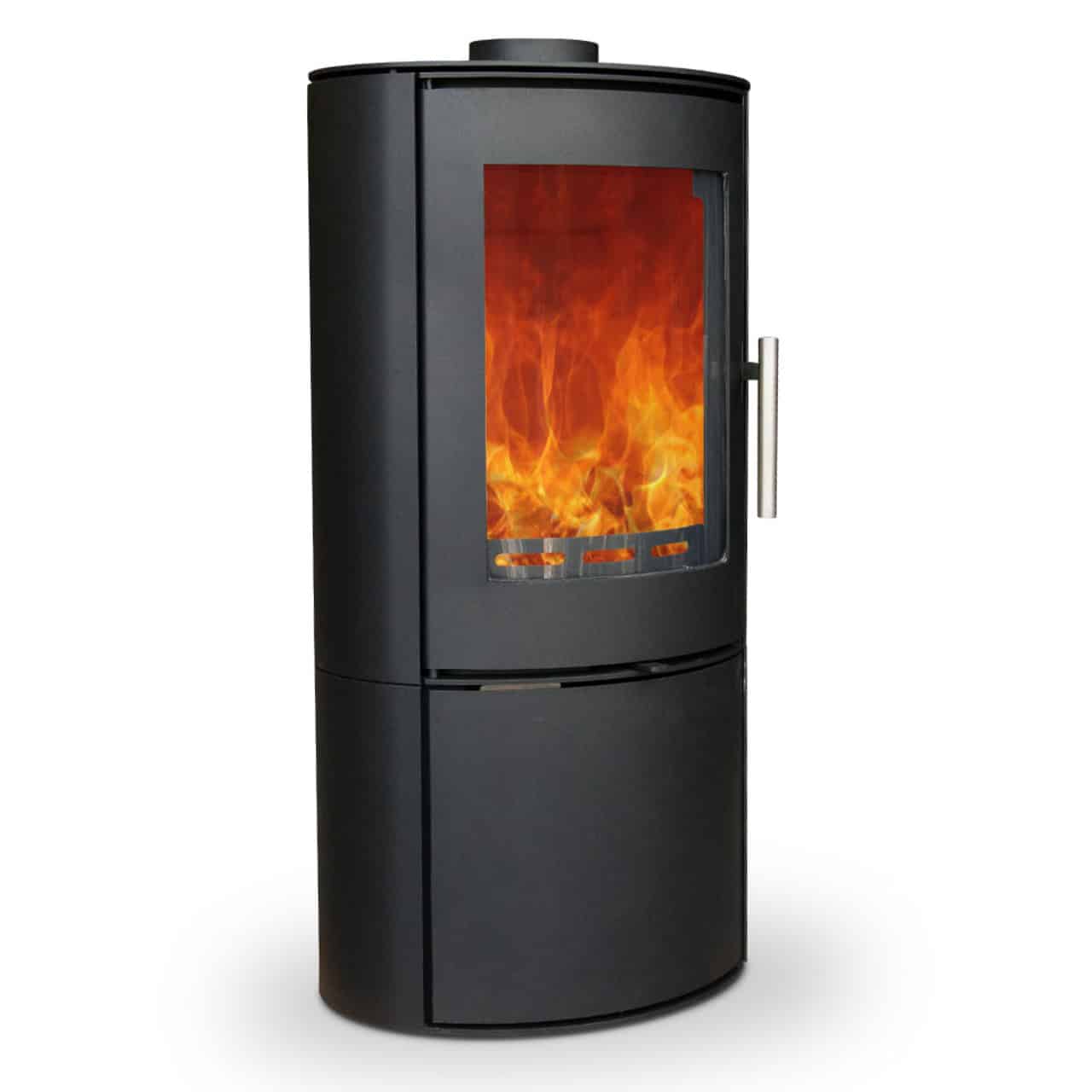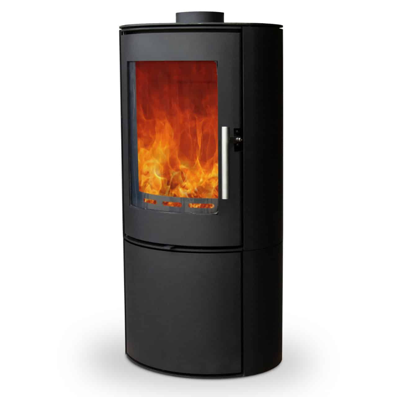 • The sleek curved glass door gives the stove a unique look, and the glass sides allow you to view the flame from multiple
